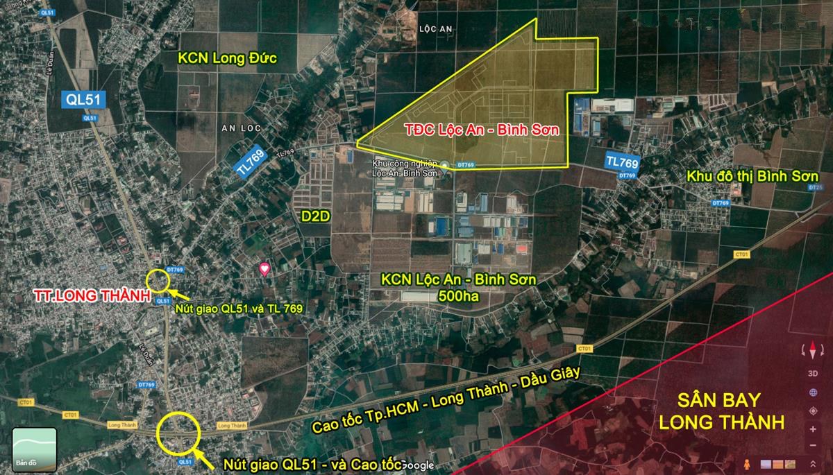 Khu tái định cư Lộc An Bình Đồng Nai sở hữu vị trí chiến lược khi nằm ngay phía Bắc sân bay Long Thành, chỉ cách khu vực sân bay vài phút di chuyển. Tọa lạc trên trục đường tỉnh ĐT 769 – tuyến giao thông huyết mạch của Long Thành – dự án thuận tiện kết nối với các trục đường lớn như Quốc lộ 51 và cao tốc TP.HCM – Long Thành – Dầu Giây.